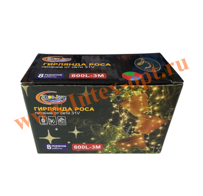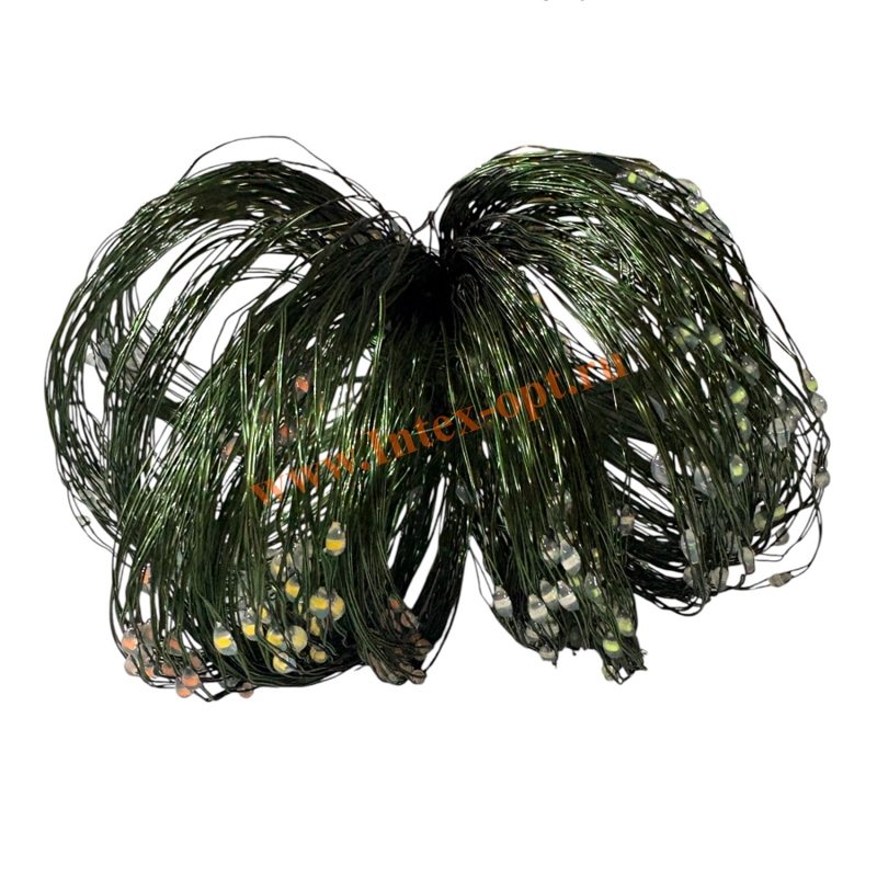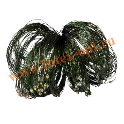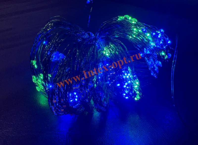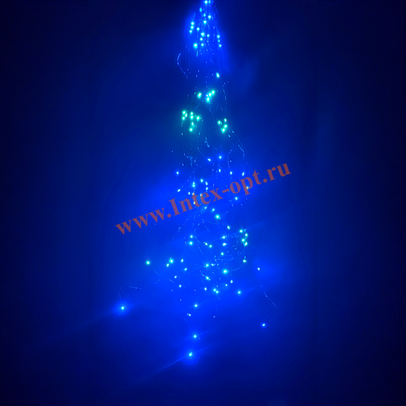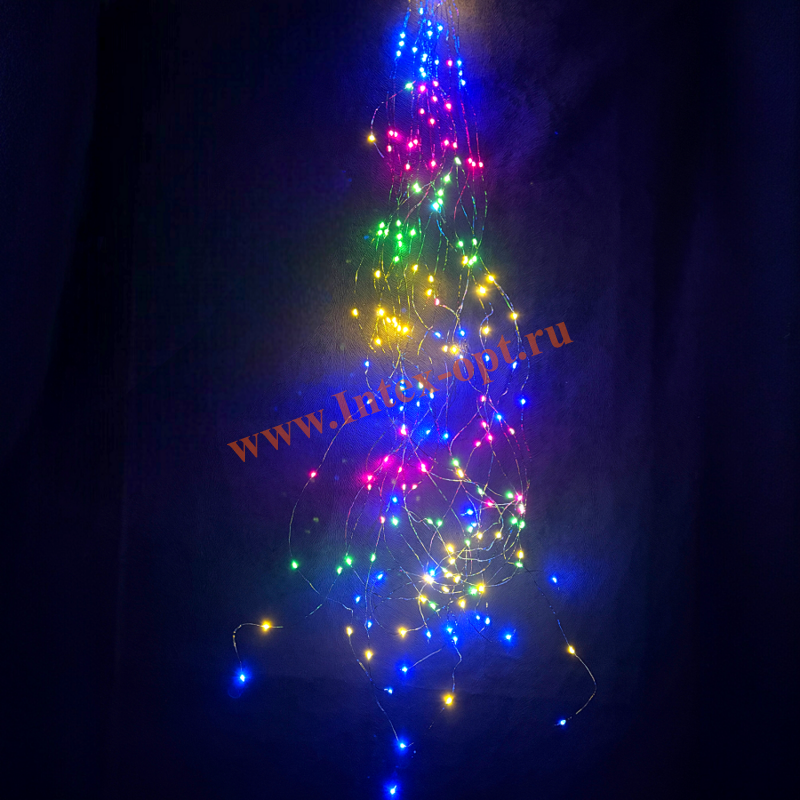 Пучок на елку состоит из 20 связанных тонких гибких нитей с последовательно расположенными диодами, расстояние между ними 10 см, длина нитей 2.95 м, плотно заполненные огнями, создают волшебную атмосферу и производят яркое впечатление на ваших гостей.