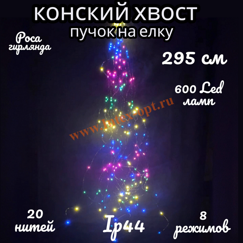 Гирлянда роса "Конский хвост" пучок на елку 3 м - 20 нитей