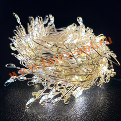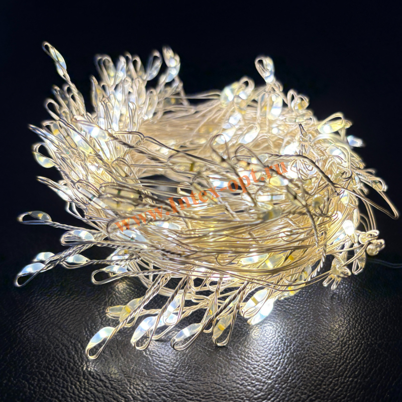Пушистая гирлянда нить, роса на елку создает теплую и уютную атмосферу с ярким свечением, благодаря светодиодам, которые расположены на тонкой проволоке.