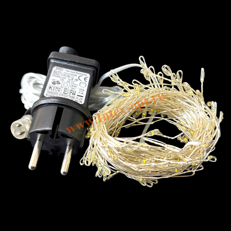 Электрогирлянда оснащена проводом с питанием от сети 220 вольт, что обеспечивает стабильное и качественное свечение и является новогодним декором и украшением для создания праздничной атмосферы.
