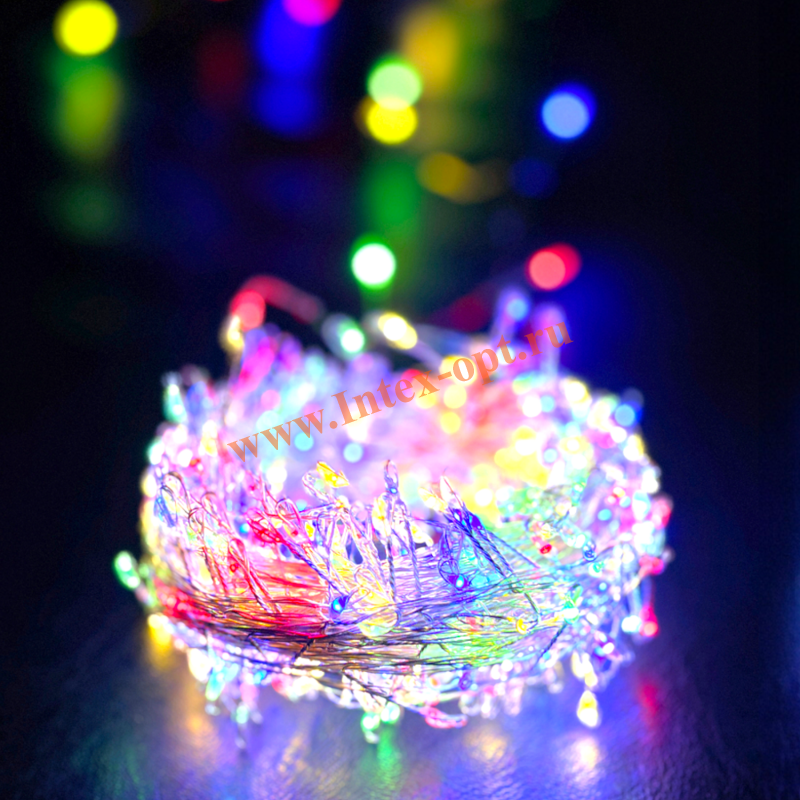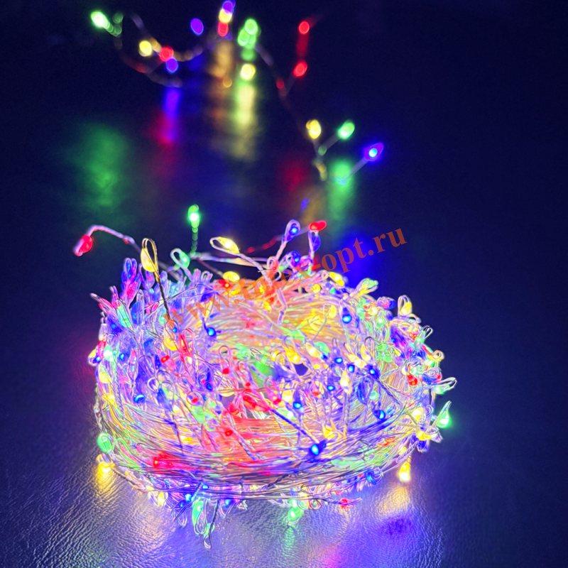 Пушистая гирлянда нить, роса на елку создает теплую и уютную атмосферу с ярким свечением, благодаря светодиодам, которые расположены на тонкой проволоке.