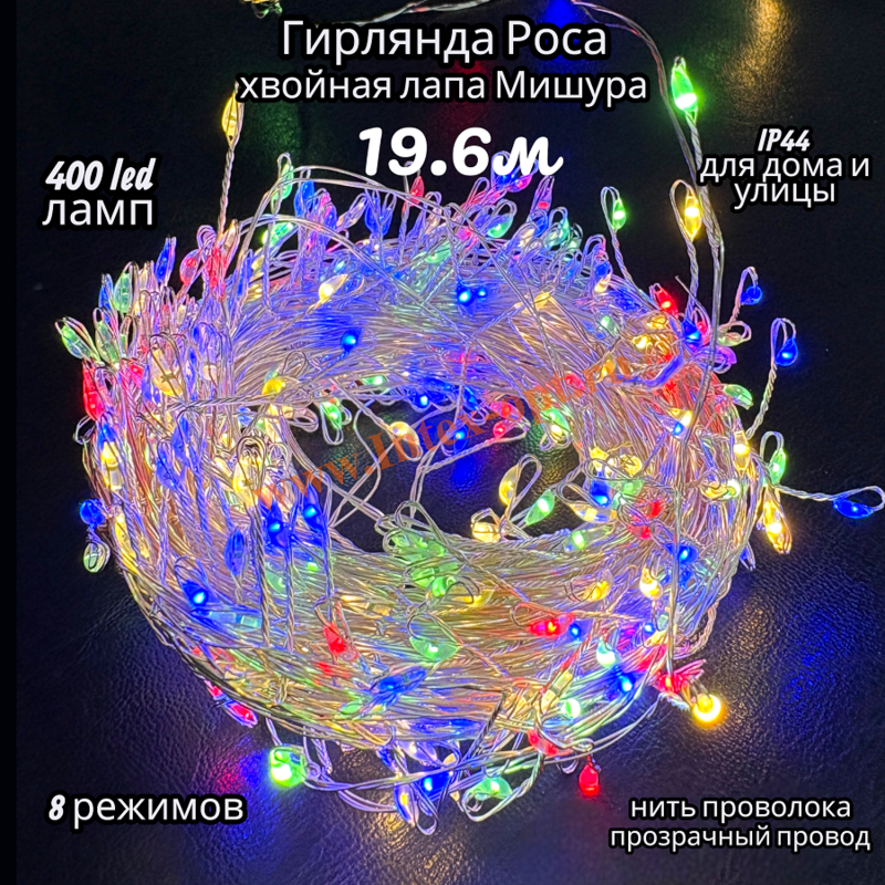 Новогодняя Уличная гирлянда Роса мишура хвойная лапа 19.6 метров - это светодиодная нить, которая подойдет для украшения окна, дома, офиса, квартиры, витрины магазина.