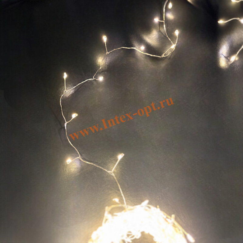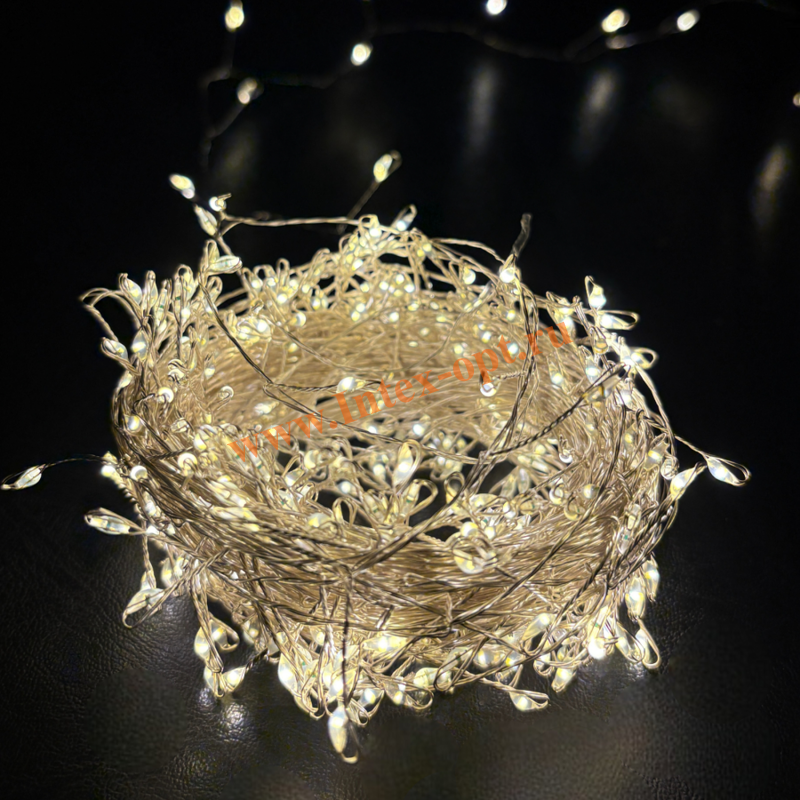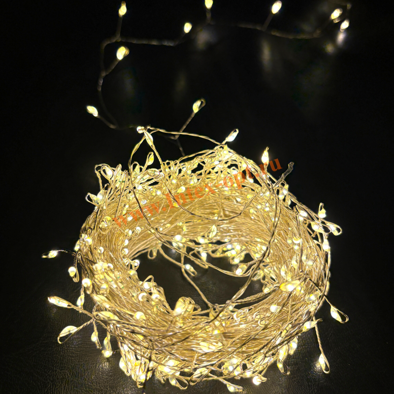 Уникальность данной гирлянды в том, что ее легкие нити практически не заметны на предмете, создается ощущение, что огоньки зависли в воздухе.
