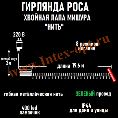 Длина гирлянды - нить: 19.6 м