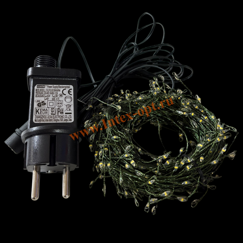 Электрогирлянда оснащена проводом с питанием от сети 220 вольт, что обеспечивает стабильное и качественное свечение и является новогодним декором и украшением для создания праздничной атмосферы.