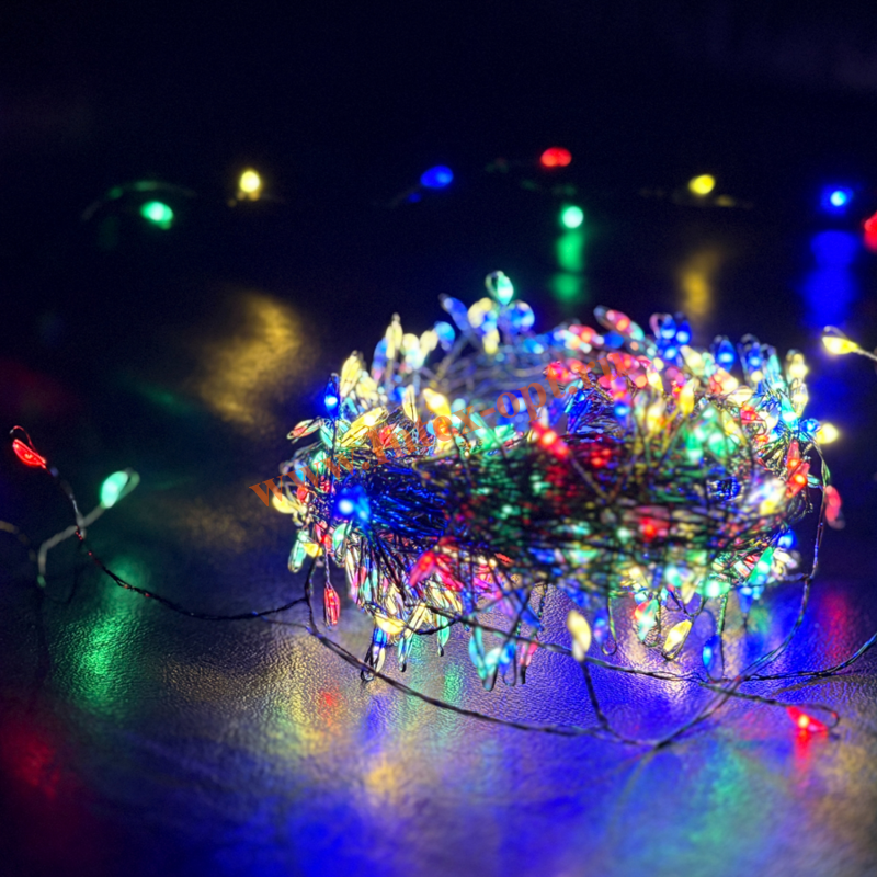 Пушистая гирлянда нить, роса на елку создает теплую и уютную атмосферу с ярким свечением, благодаря светодиодам, которые расположены на тонкой проволоке.