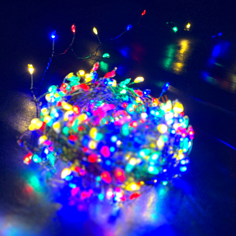 Уникальность данной гирлянды в том, что ее легкие нити практически не заметны на предмете, создается ощущение, что огоньки зависли в воздухе.