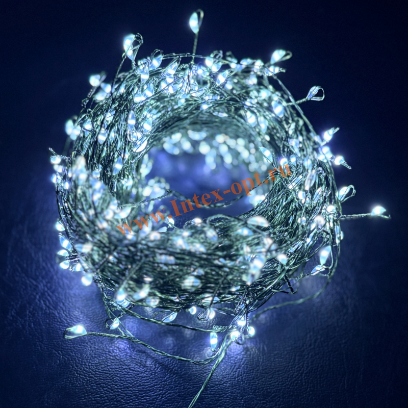Уникальность данной гирлянды в том, что ее легкие нити практически не заметны на предмете, создается ощущение, что огоньки зависли в воздухе.