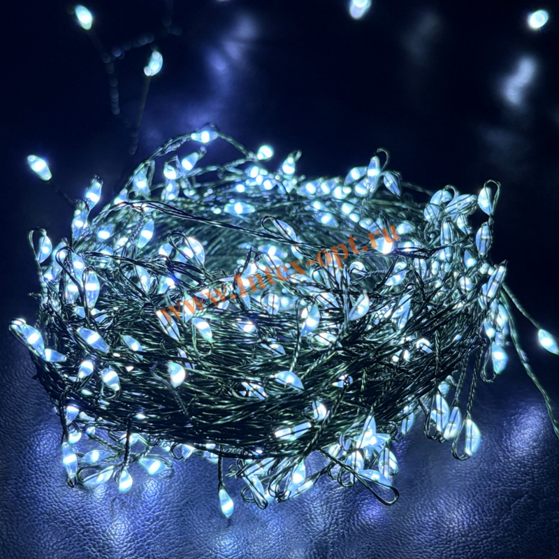 Пушистая гирлянда нить, роса на елку создает теплую и уютную атмосферу с ярким свечением, благодаря светодиодам, которые расположены на тонкой проволоке.