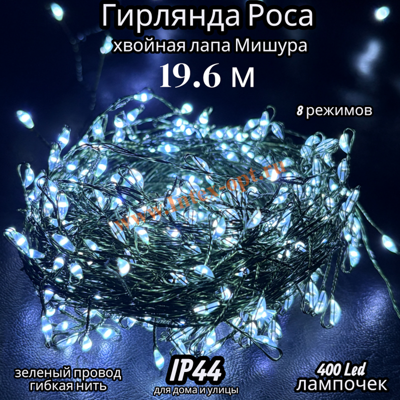 Новогодняя Уличная гирлянда Роса мишура хвойная лапа 19.6 метров - это светодиодная нить, которая подойдет для украшения окна, дома, офиса, квартиры, витрины магазина.