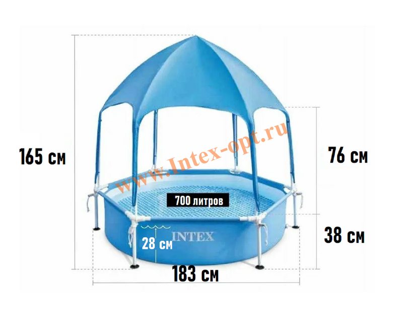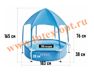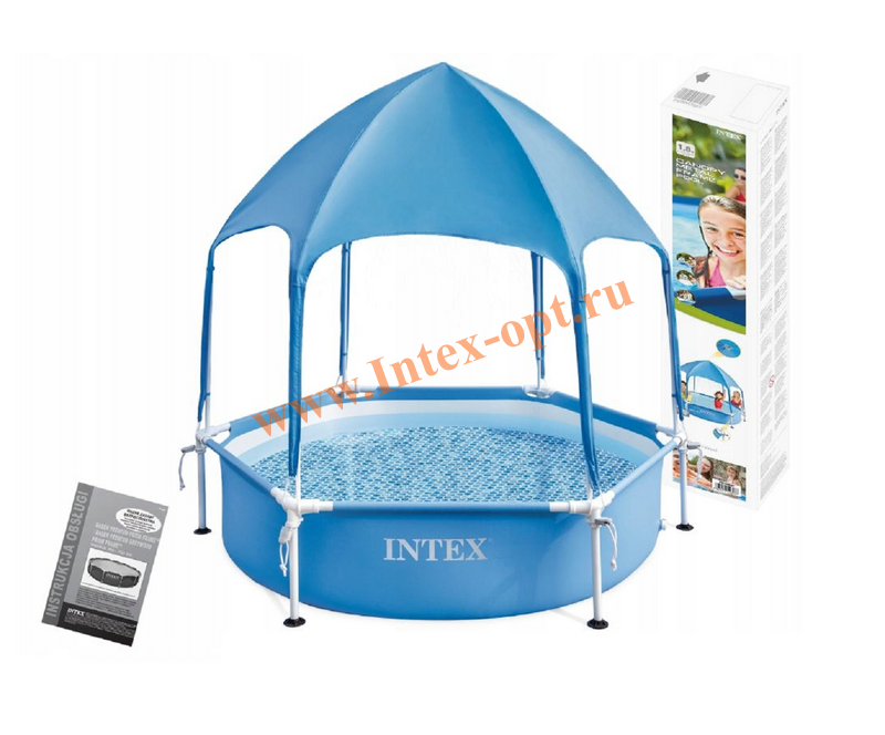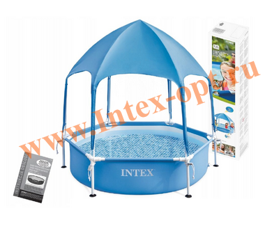 Бассейн каркасный круглый Intex (Интекс) 28209NP Metal Frame с навесом, диаметр: 183 см, высота: 38 см,