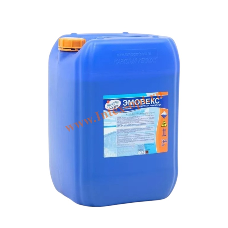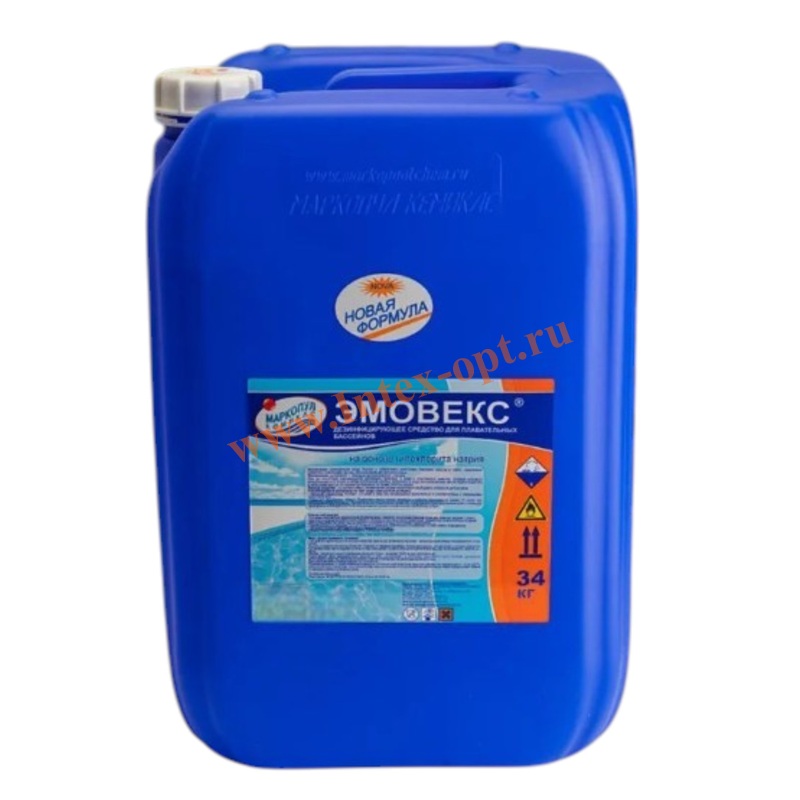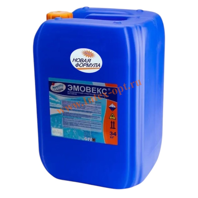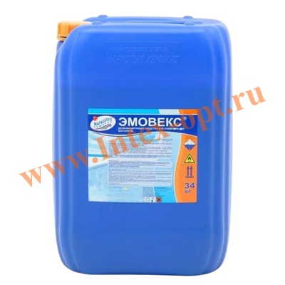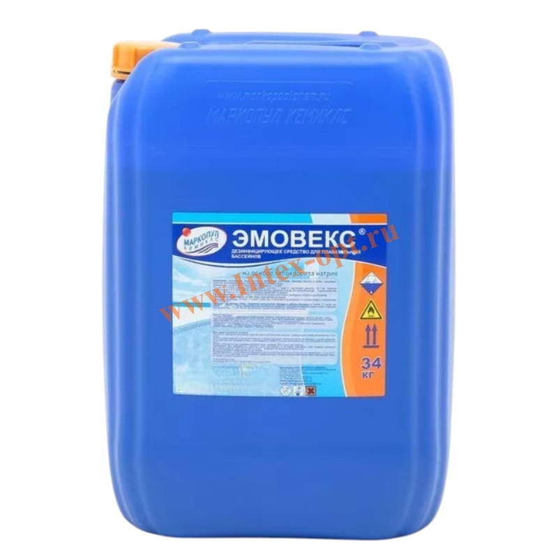 Эмовекс 30л "Новая формула" жидкий хлор для бассейна, канистра 34 кг.