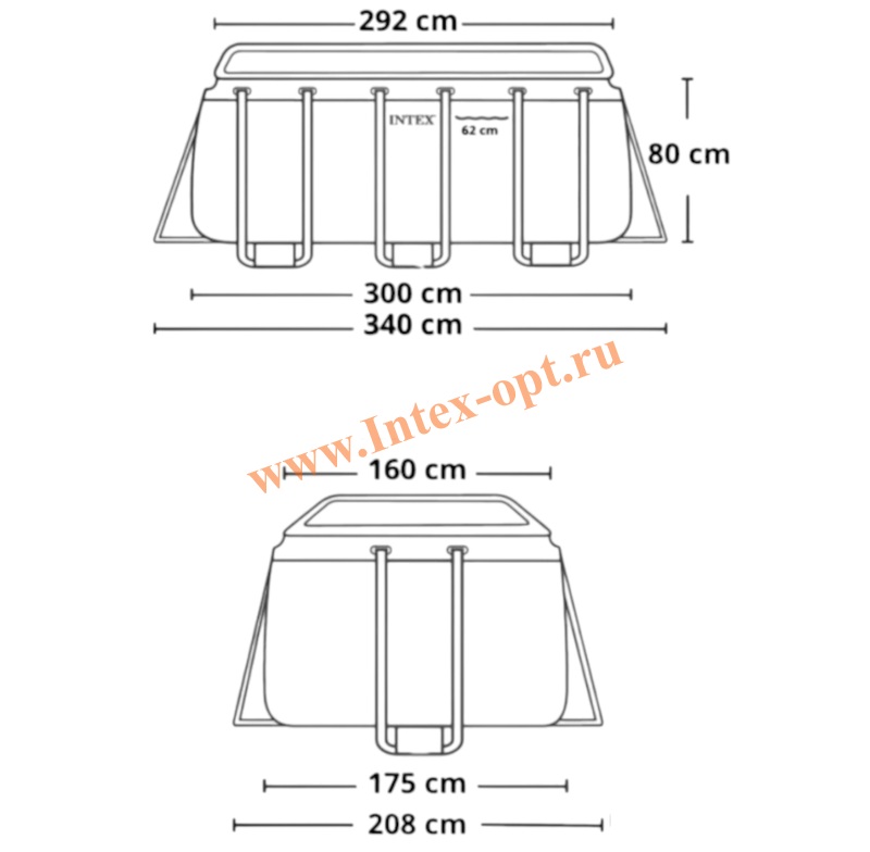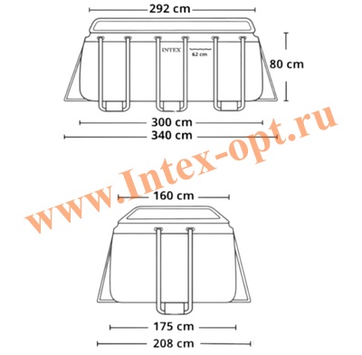 Каркасный бассейн 300x175x80 см, Intex Prism Frame Rectangular Premium Pools 26784