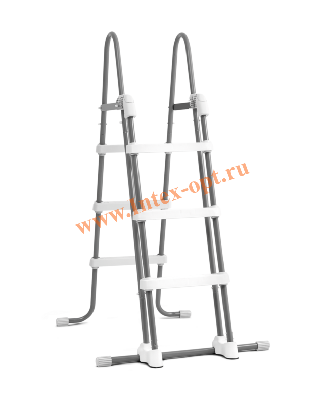 В комплекте устойчивая стальная лестница с пластиковыми ступеньками и защитными наконечниками.